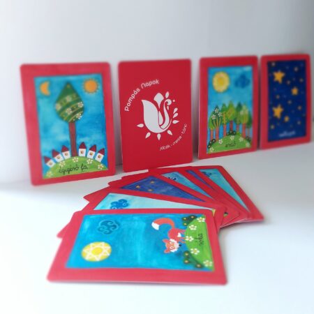 Minden kártyán más-más népmesei szimbólum szerepel, ezáltal mind otthoni, mind óvodai-iskolai környezetben számos mesés feladat és játék kiegészítői lehetnek.