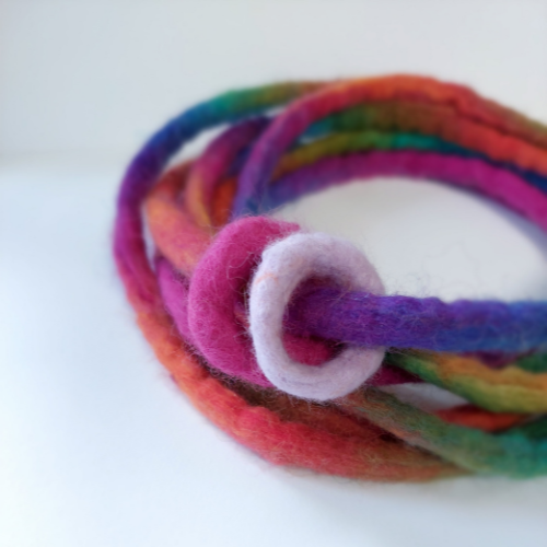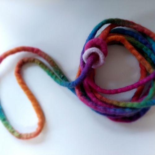 Az ingerkereső gyerekeknek segít koncentrálni a mesehallgatás ideje alatt is. A zsinór vizes nemezeléssel készült, végtelen körként szimbolizálja az összetartozást, és azt, hogy a körben mindenki egyenlő. A kör átmérője kb 110 cm.