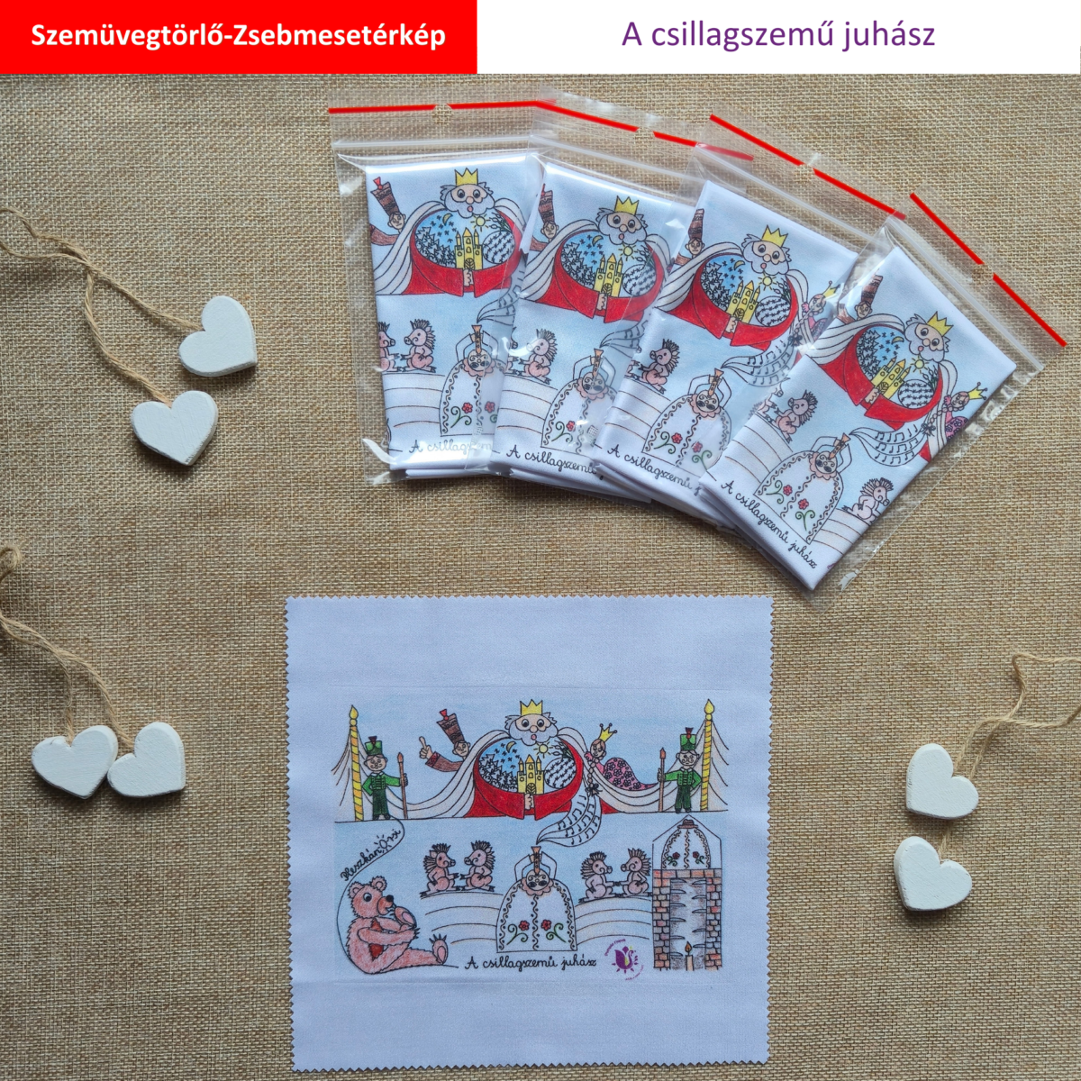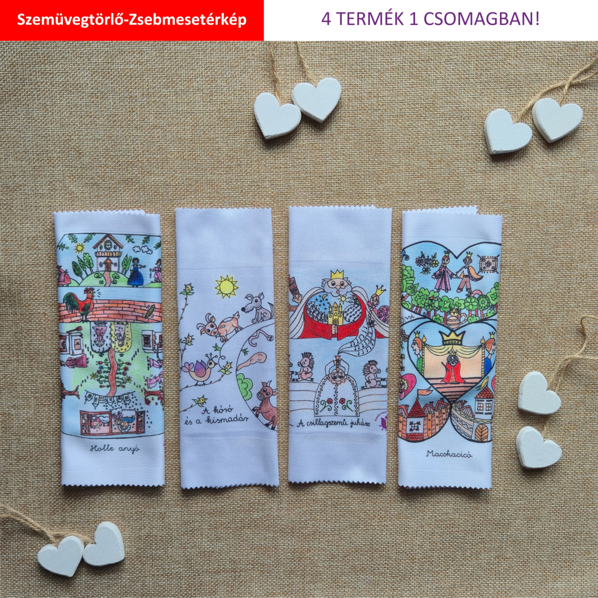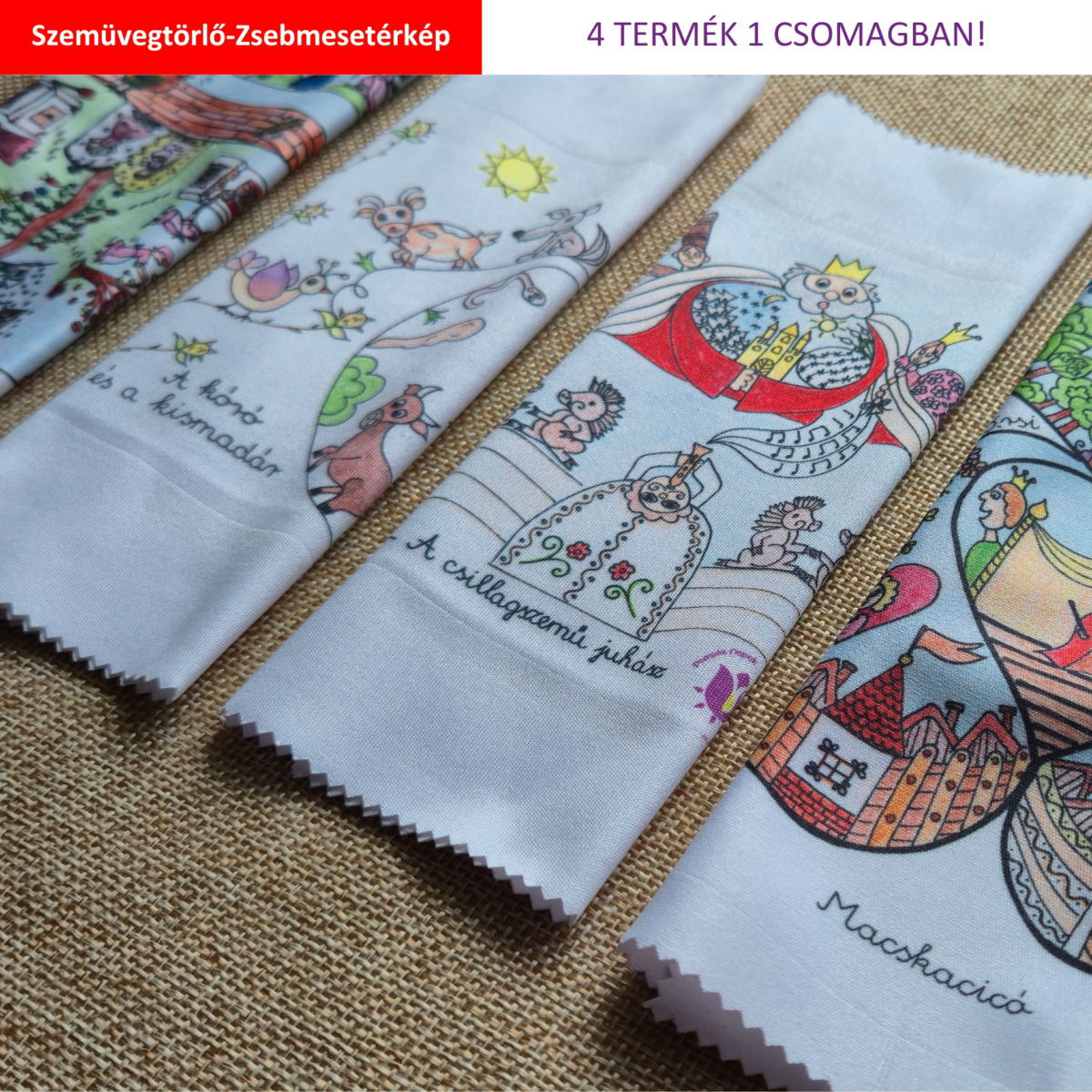 Ez a kis kendő nemcsak tisztán tartja a szemüvegedet vagy telefonod kijelzőjét, hanem igazi zsebmesetérkép is: bármikor elővehető, ha egy kis meseidőre van szükség – akár az orvosi rendelőben, utazás közben, vagy egy esős délutánon a kanapén összebújva.